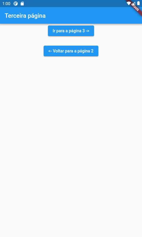 Partindo do exemplo acima, conseguimos criar um botão para avançar uma página e retroceder uma página, de acordo com a necessidade do usuário. Repare que foi necessário o uso do widget MaterialPageRoute para definir como a transição entre as telas acontecerá.